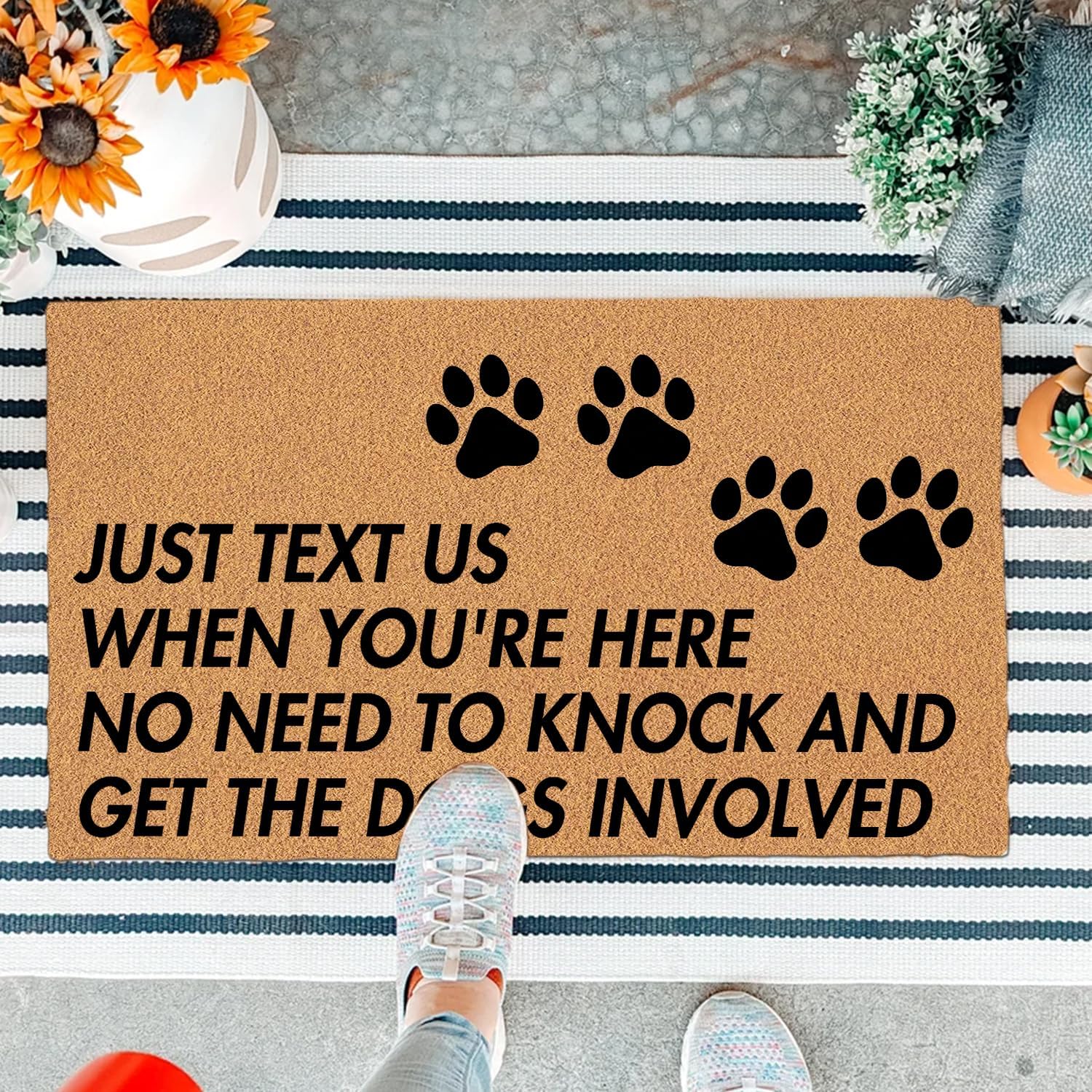 Packages List : 1 x DoormatItem Size : 18"(W) x 30"(L) 3/16" thickness Product Highlights: ▲ High-Quality Material: Designed with a non-woven fabric surface and a sturdy non-slip rubber base, this doormat ensures secure placement on any floor, including hardwood. Safe for kids and pets, it’s also machine washable for effortless maintenance.▲ Eye-Catching Design: Showcases bold, personalized patterns with funny themes like witty quotes, anime, movie references, dogs, flamingos, cacti, or beach vibes, transforming this welcome mat into a standout decor piece.▲ Multi-Purpose Use: Ideal as a welcome mat for front doors, entryways, kitchens, or living rooms. This versatile doormat enhances home decor in offices, patios, or farmhouse settings.▲ Perfect Gift Idea: With its unique, colorful designs, this doormat makes a thoughtful housewarming gift, birthday surprise, or festival present, suitable for any celebration.▲ Key Notes: Crafted as a thin doormat for indoor use, it blends practicality with stylish charm, elevating your home’s ambiance.