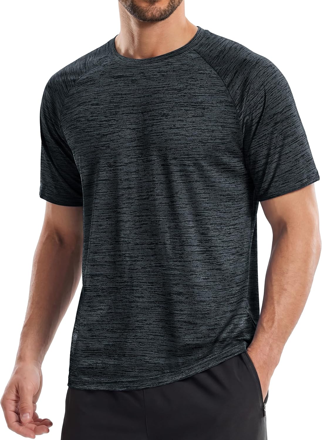 • [Features] Crew neck short sleeves T-shirt, tag-free design, quick dry moisture wicking, stretch fabric.